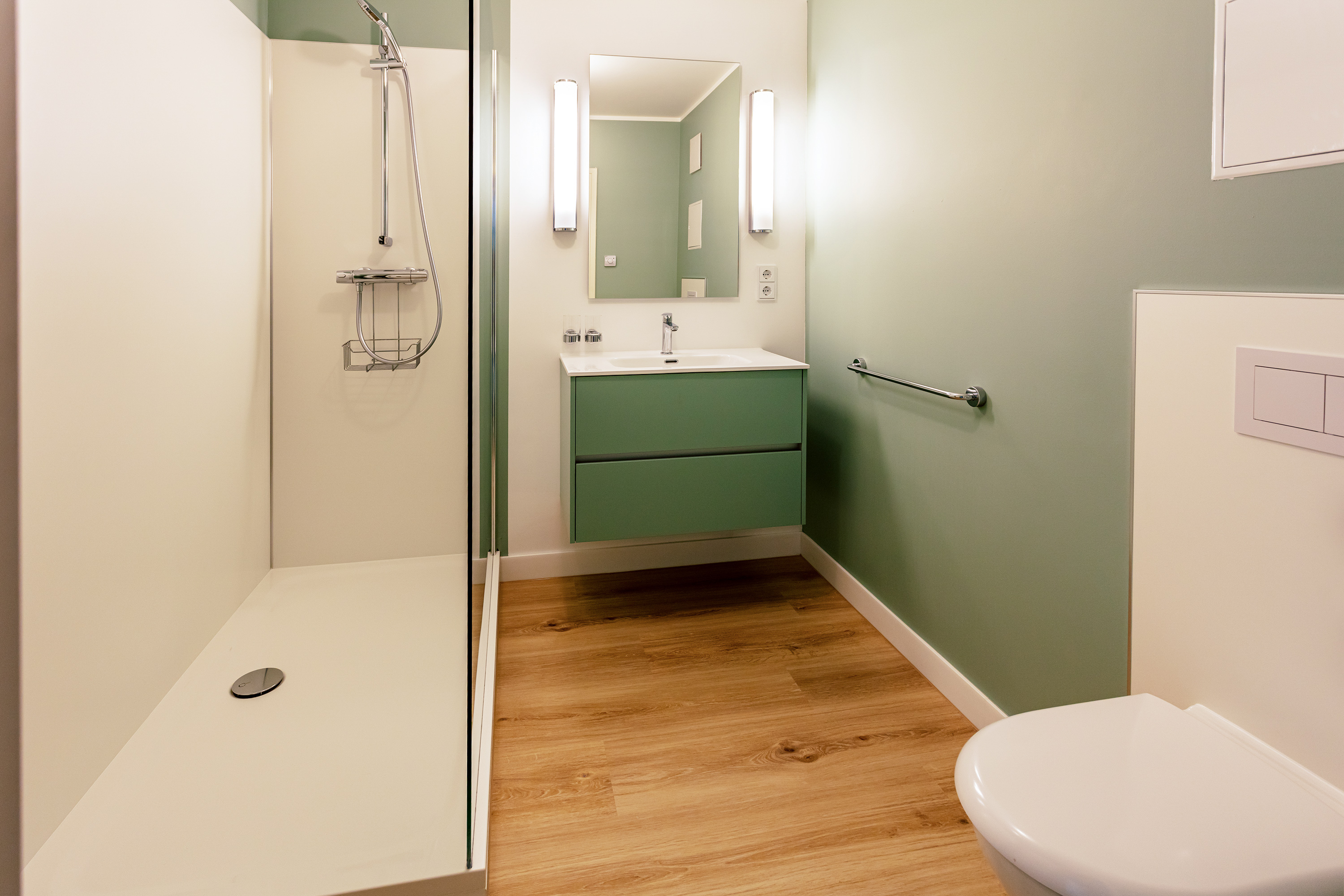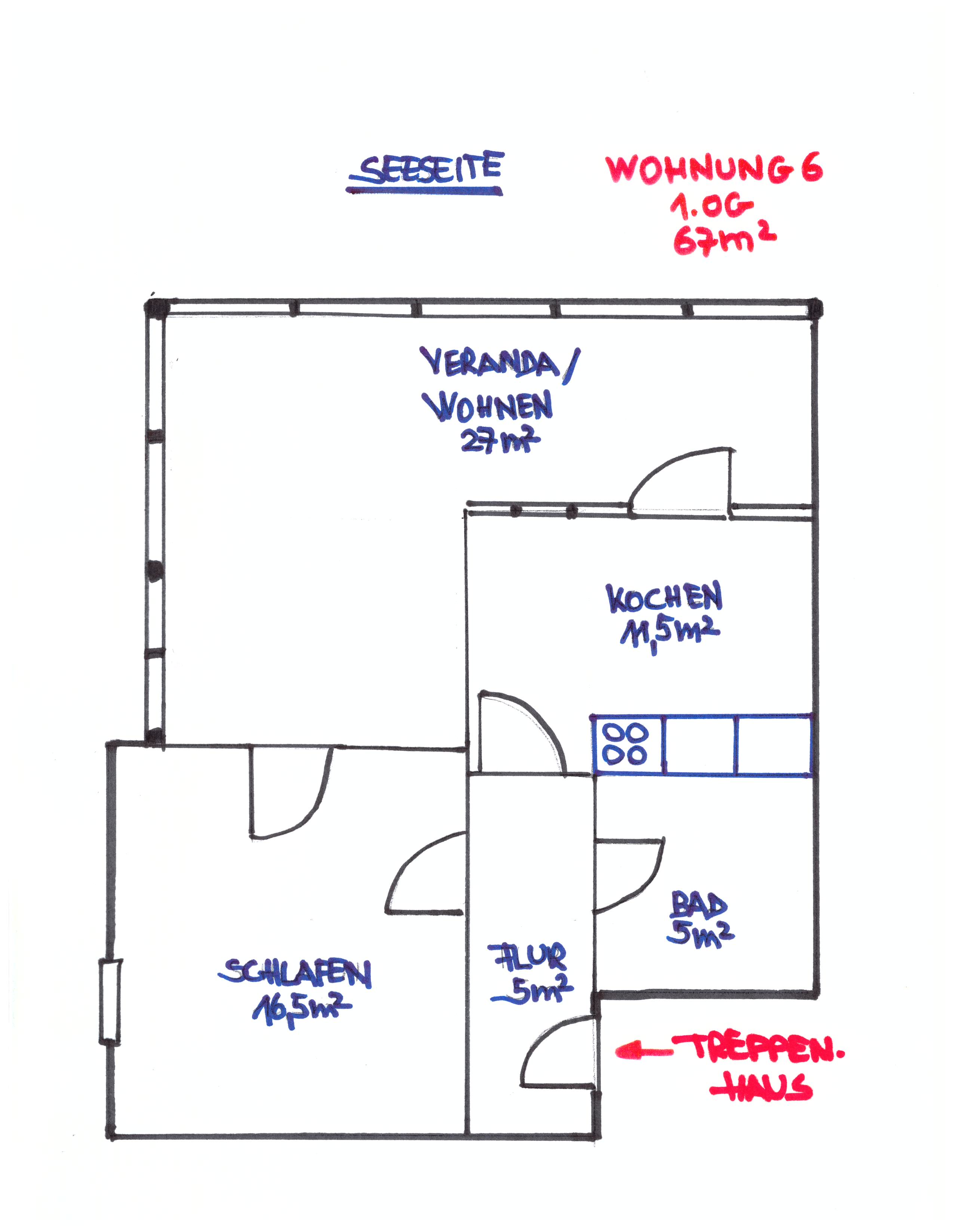 67 qm, gläserne Veranda mit Ostseeblick, Schlafzimmer mit großem Doppelbett (2×2 m), großes Wohnzimmer, Küche mit Geschirrspüler, Duschbad