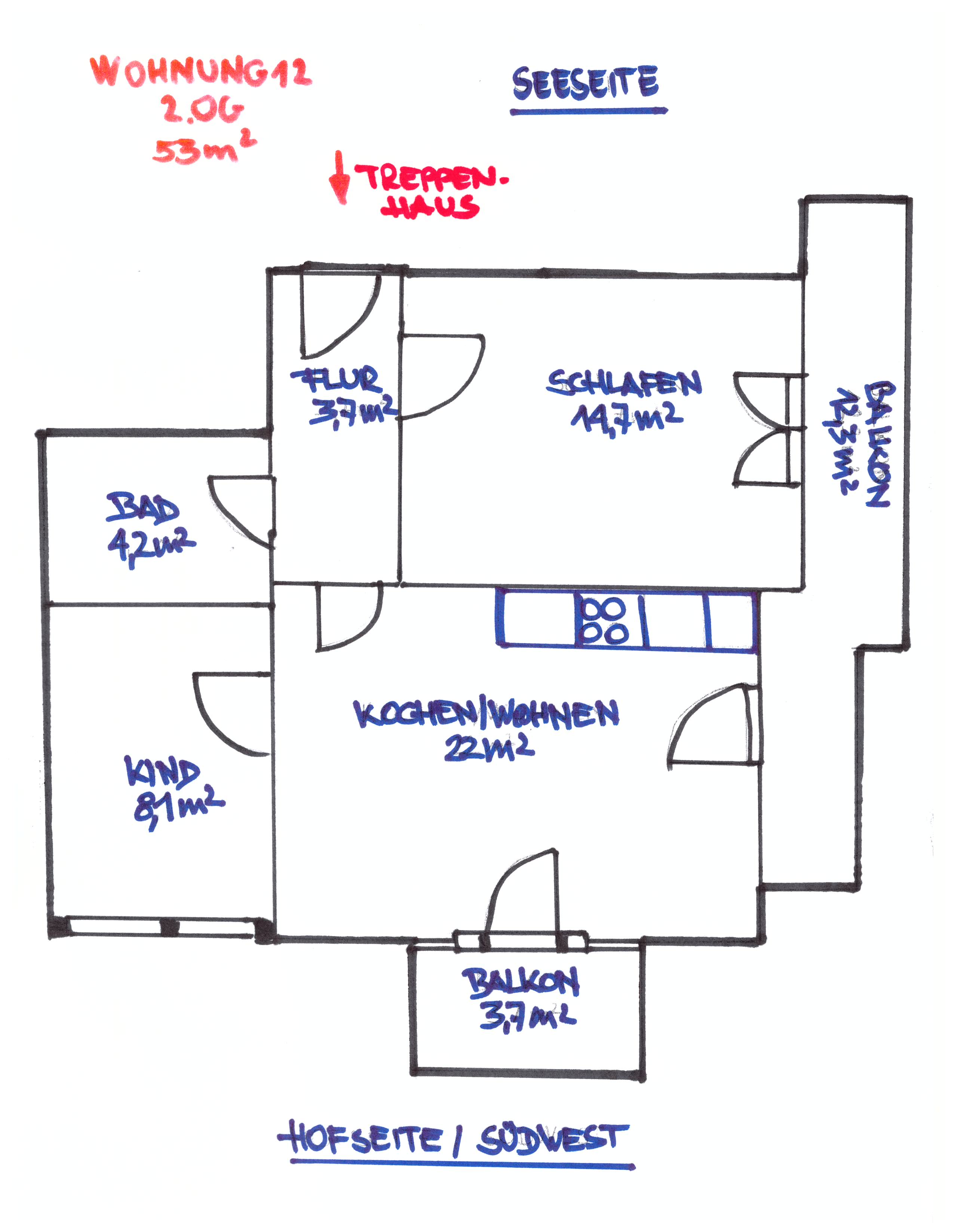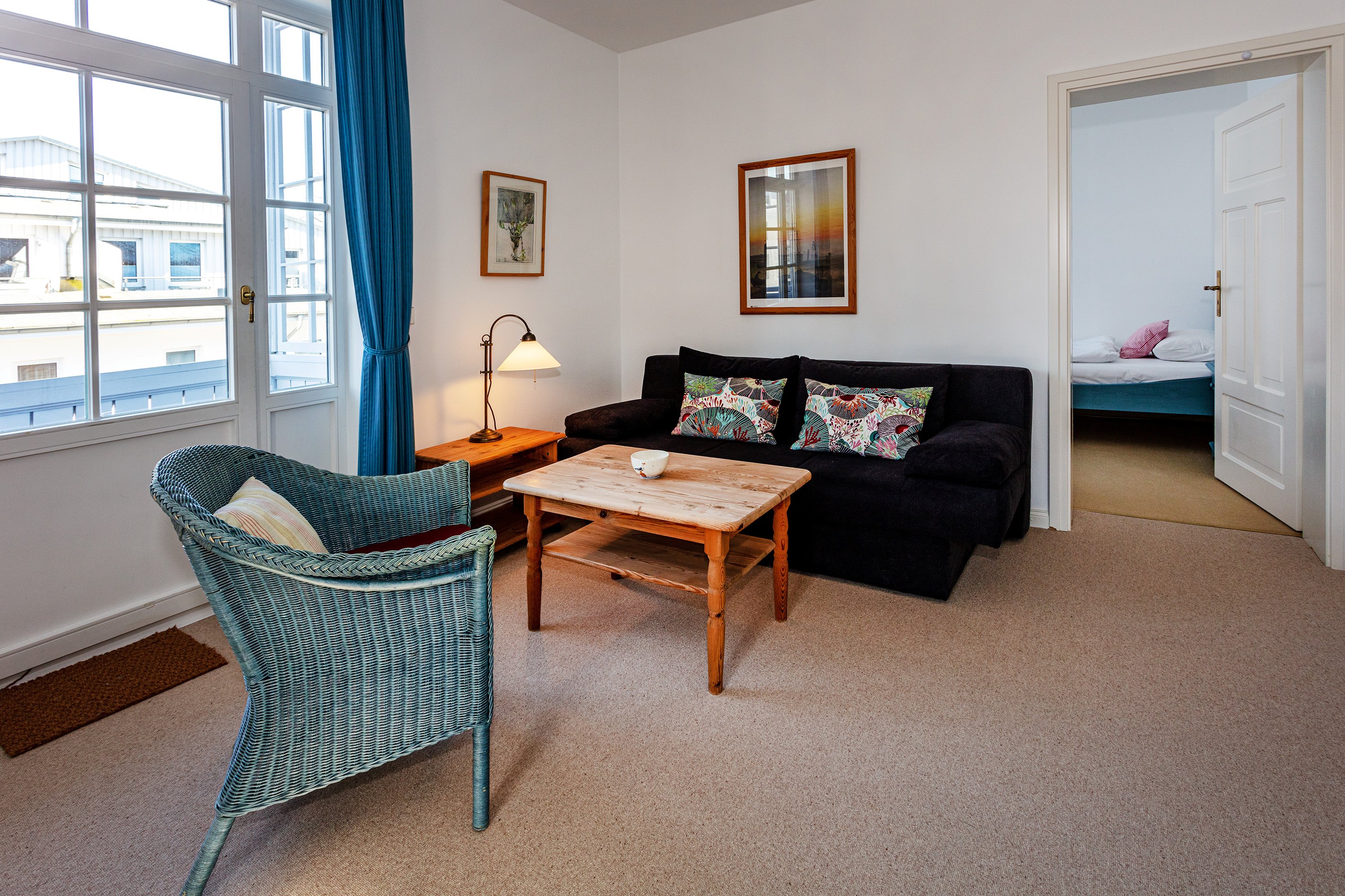 Die Wohnung 12 liegt im 2. Geschoss nach Osten ausgerichtet und hat einen sonnigen Balkon zum Hof sowie einen Seitenbalkon mit Blick zur Ostsee.