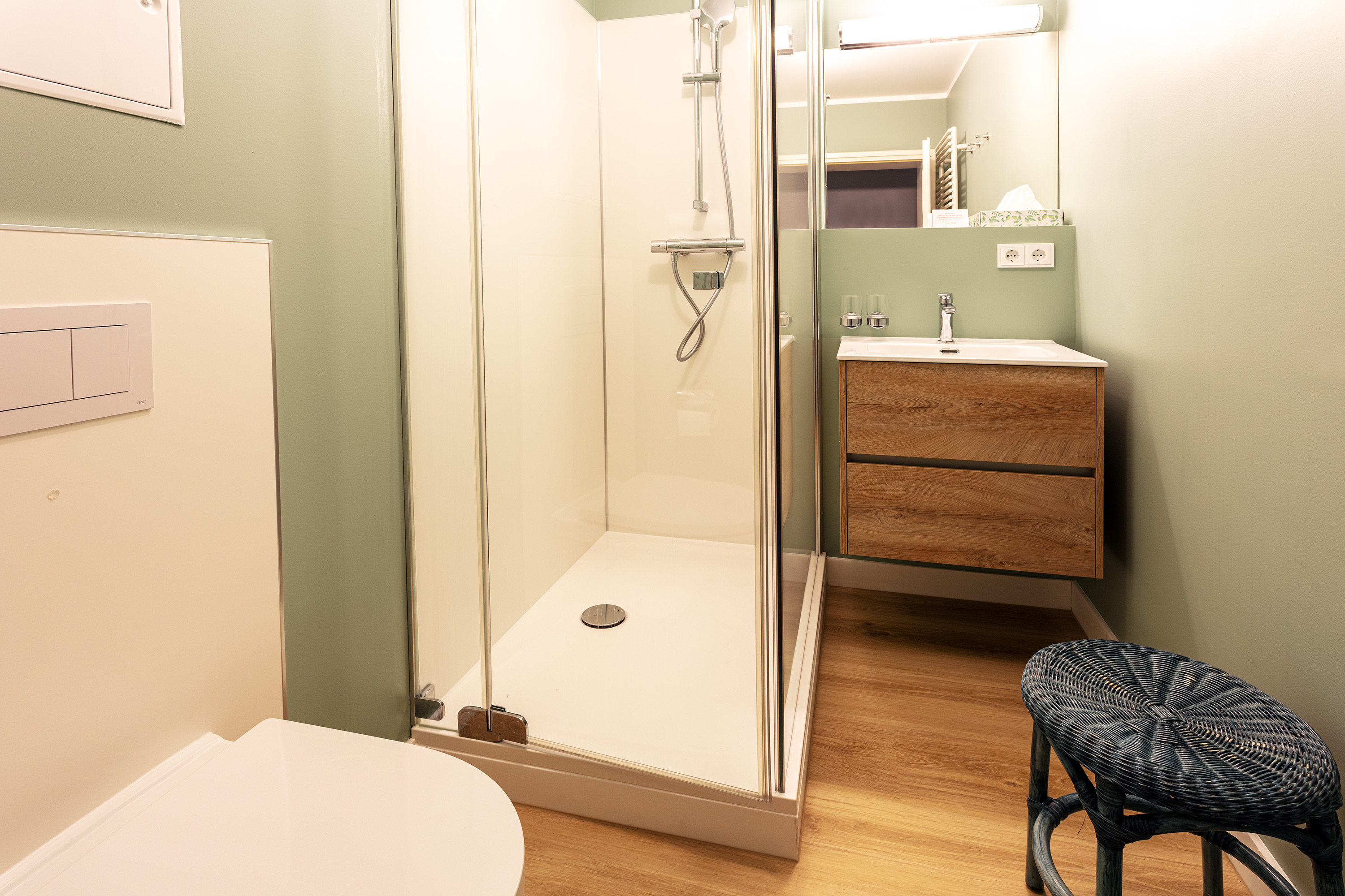 55 qm, Balkon und 2 Seitenbalkone, 1 Schlafzimmer mit Doppelbett, 1 Schlafzimmer mit Einzelbett, geräumiges Wohn- und Esszimmer mit Küchenzeile (inkl. Geschirrspüler und Mikrowelle), neu gestaltetes Duschbad